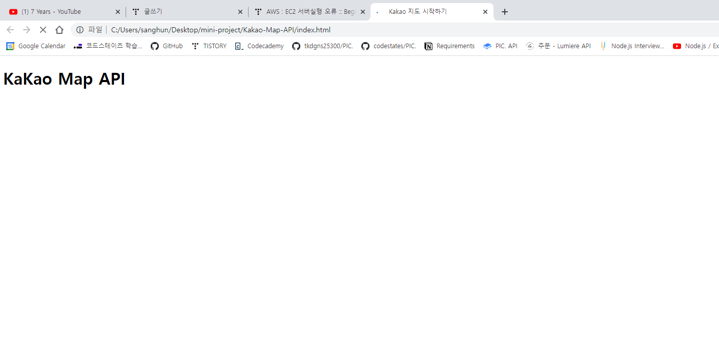 카카오 맵 API 가이드를 따라 지도를 띄우는 코드를 작성해도 지도가 띄워지지 않는 문제