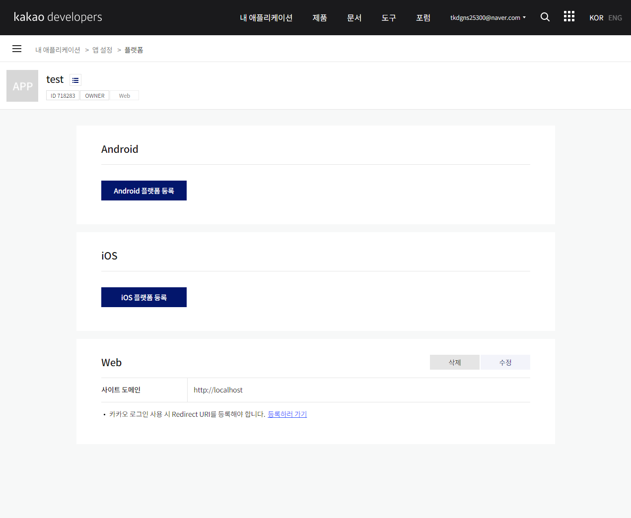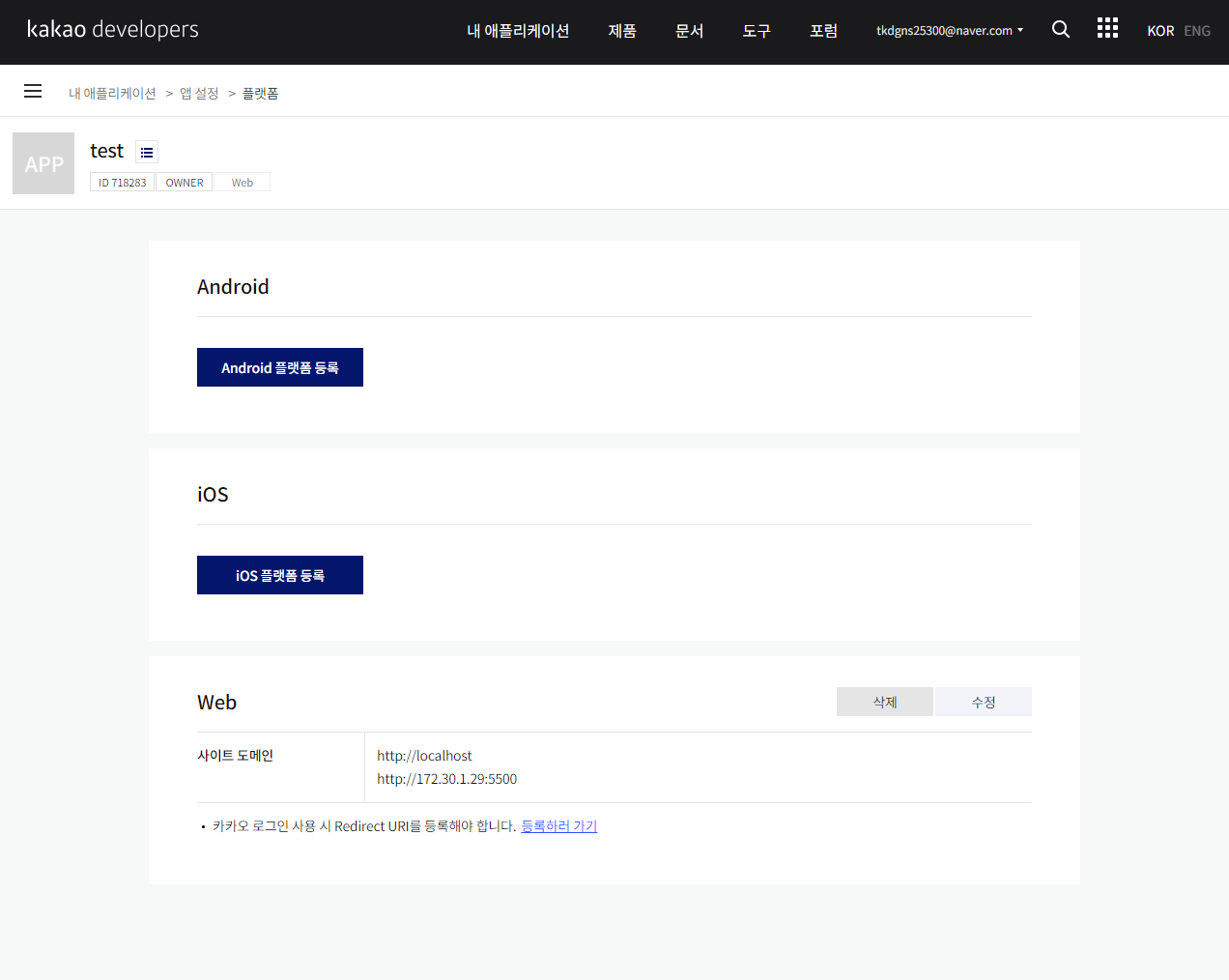 012: 가이드를 따라 애플리케이션 추가, 앱 키 발급, 사이트 도메인 추가