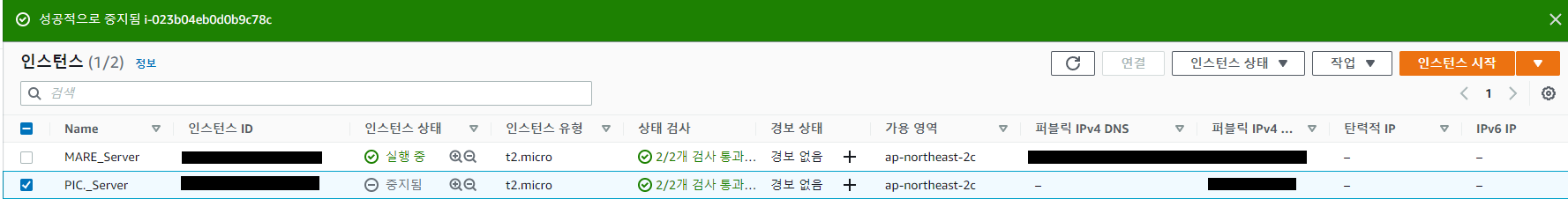 : 그래서 로드밸런서 설정에 들어가 ap-northeast-2c 구역을 사용하도록 설정해주었다.
