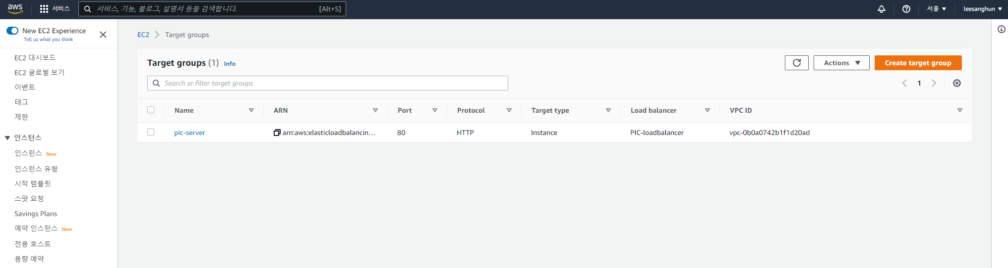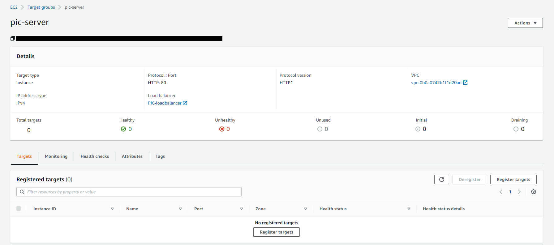 : 생성한 로드밸런서의 대상그룹에 들어가보니 원래라면 대상그룹 안에 나의 EC2 Server 인스턴스가 포함되어있어야 하는데 포함되어 있지 않았다.