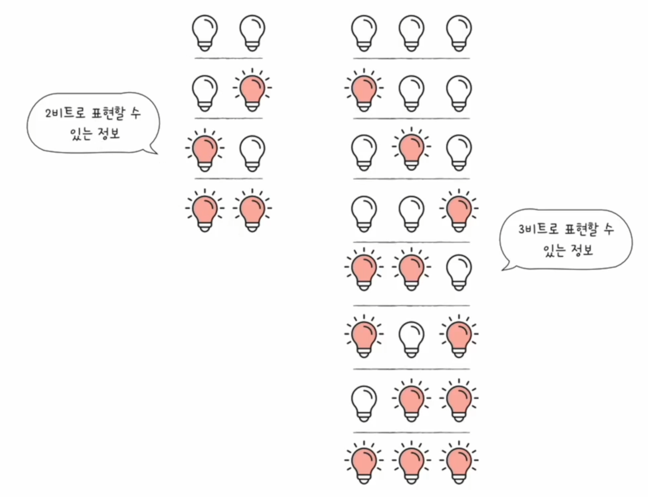 - n비트로 2ⁿ가지의 정보 표현 가능