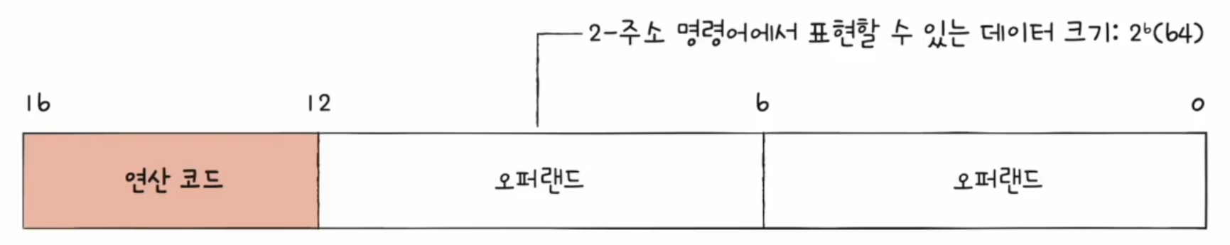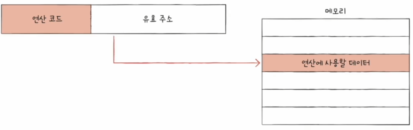 유효 주소를 표현할 수 있는 크기가 연산 코드만큼, 오퍼랜드 개수만큼 줄어듦출처 : 인프런 '혼자공부하는 컴퓨터구조 + 운영체제'