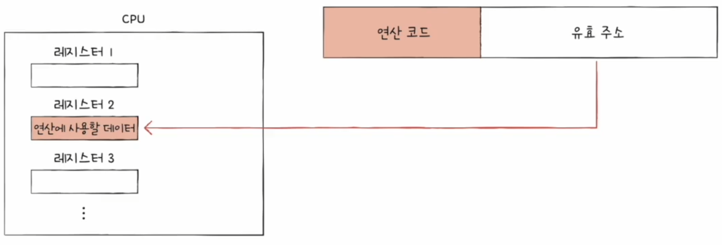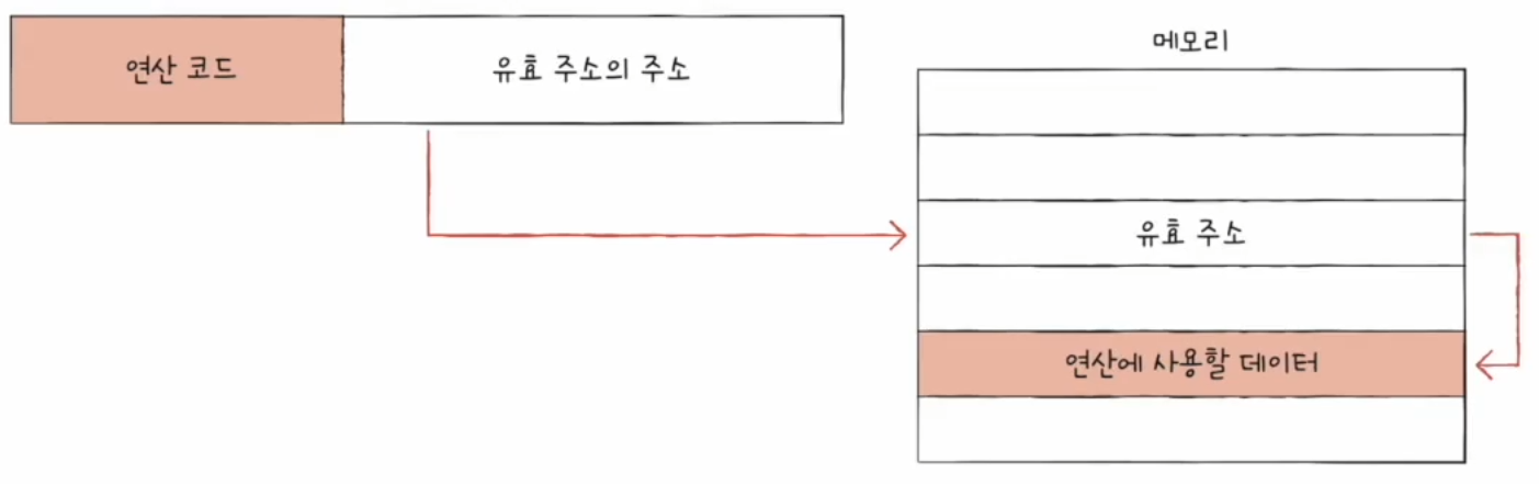 유효 주소 : 연산에 사용할 데이터가 저장된 위치출처 : 인프런 '혼자공부하는 컴퓨터구조 + 운영체제'