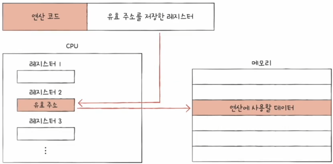 유효 주소 : 연산에 사용할 데이터가 저장된 위치