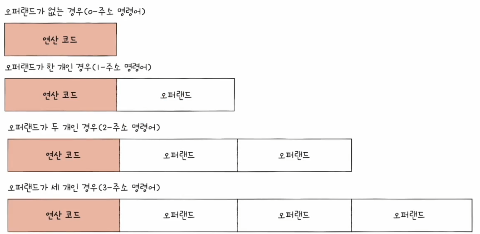 명령어는 오퍼랜드와 연산 코드로 구성됨.