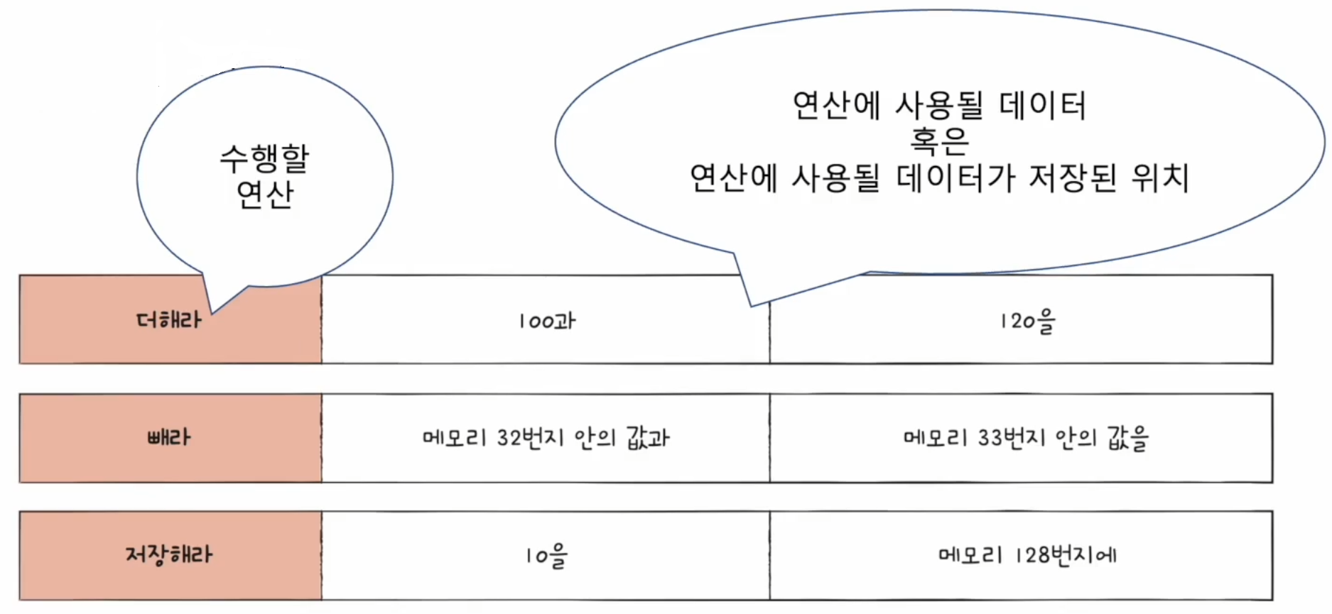 출처 : 인프런 '혼자공부하는 컴퓨터구조 + 운영체제' 보통 오퍼랜드에는 연산에 사용될 데이터보다, 연산에 사용될 데이터가 저장된 위치가 훨씬 더 많이 저장됩니다.