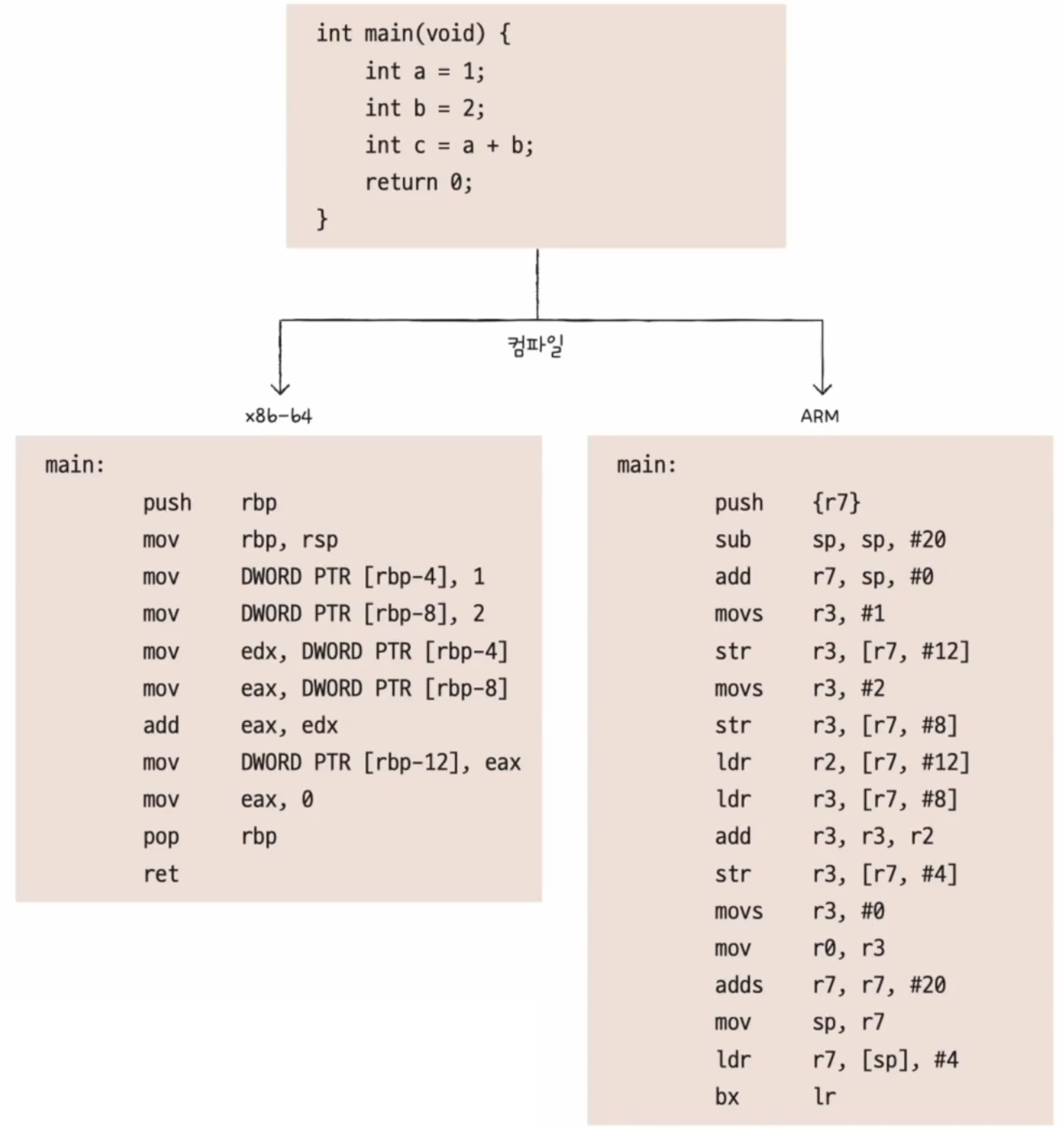 +.같은 소스코드를 컴파일 하더라도 CPU의 종류에 따라서 Assemblier의 종류도 달라질 수 있습니다.