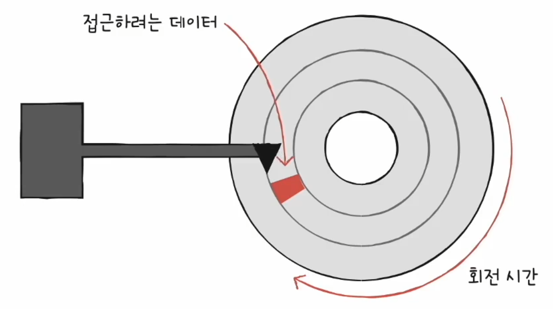 하드디스크가 저장된 데이터에 접근하는 시간은 탐색 시간(seek time), 회전 지연(rotational latency), 전송 시간(transfer time)에 따라 달라집니다.
