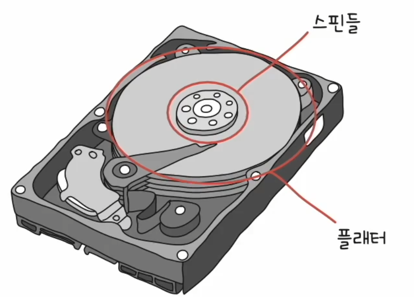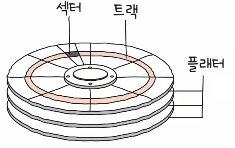 섹터와 트랙 단위로 데이터를 저장합니다. 보통 연속된 정보는 한 실린더에 기록됩니다.섹터, 트랙, 실린더 +. 섹터의 크기 : 512 byte ~ 4096 byte