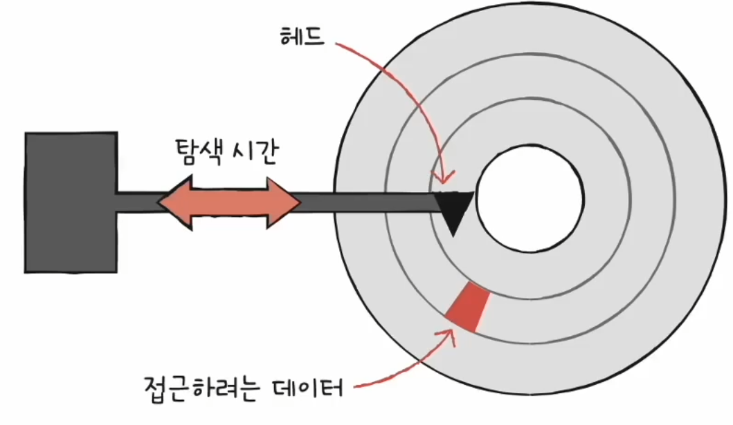 탐색 시간 : 접근하려는 데이터가 저장된 트랙까지 헤드를 이동시키는 시간