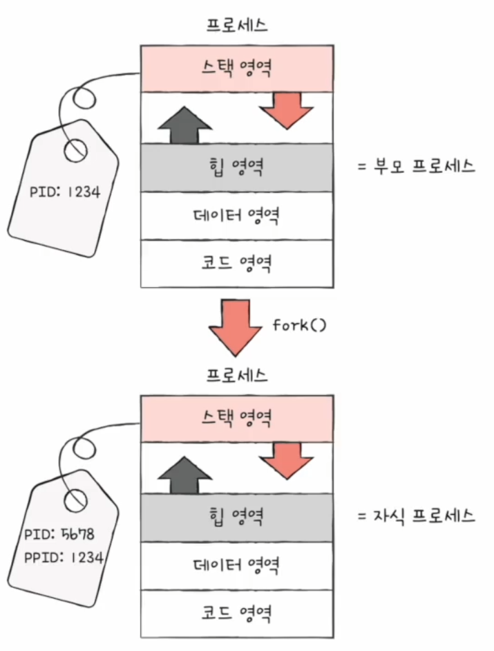 - 복사본이지만 다른 프로세스 이기 때문에 PID 값이 다릅니다.