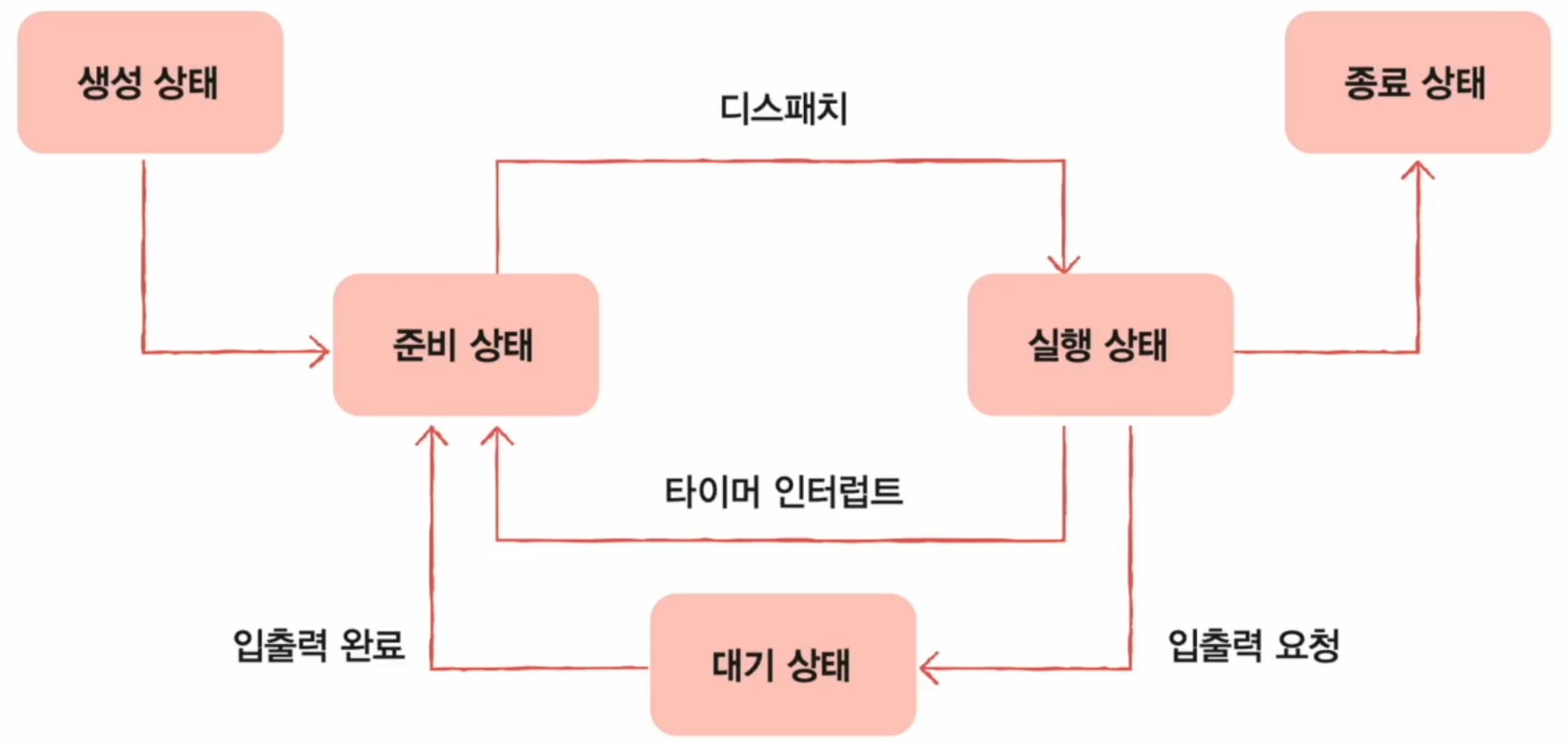 - 입출력 작업이 끝나면 준비 상태로