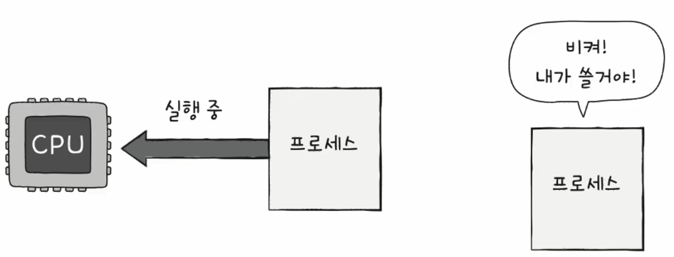 - 선점형 스케줄링은 현재 CPU를 사용중인 프로세스로부터 CPU자원을 빼앗아 다른 프로세스에 할당하고,