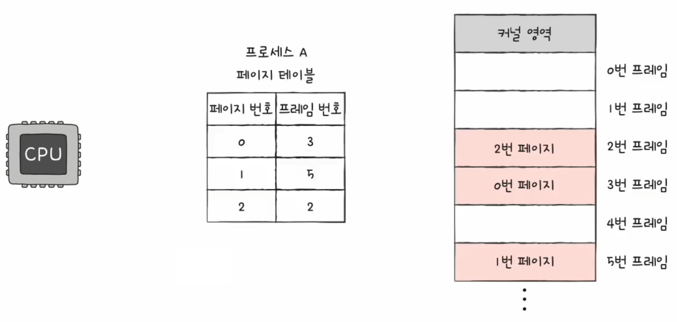 메모리의 물리 주소 공간을 프레임(frame)이라는 페이지와 동일한 일정한 단위로 자른 뒤