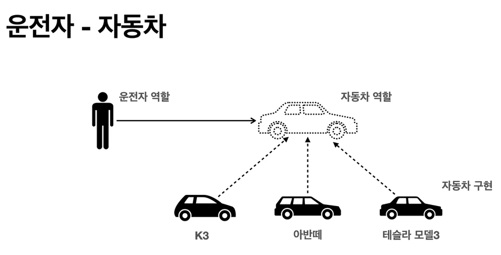 이처럼 세상을 역할과 구현으로 구분하면 단순해지고, 유연해지며 변경도 편리해집니다.
