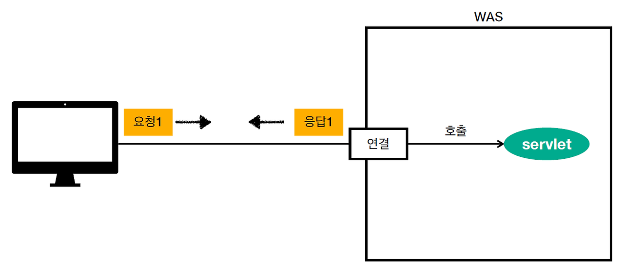 - 서블릿을 지원하는 WAS의 가장 큰 특징 중 하나는 동시 요청을 처리하기 위한 멀티쓰레드 기능을 지원한다는 점입니다.