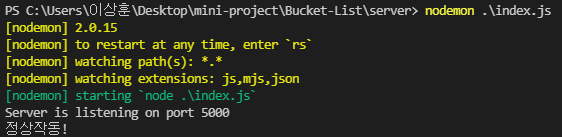 +. .env 파일을 프로젝트의 최상위 디렉토리에 위치시킨다는 것에서 최상위 디렉토리란, 프로그램이 실행될 때의 최상위 디렉토리를 말하는 것이므로 .env 파일의 위치를 옮기지 않고 단지 server폴더에서 서버를 실행시켜도 정상작동하는 것을 확인할 수 있었다.